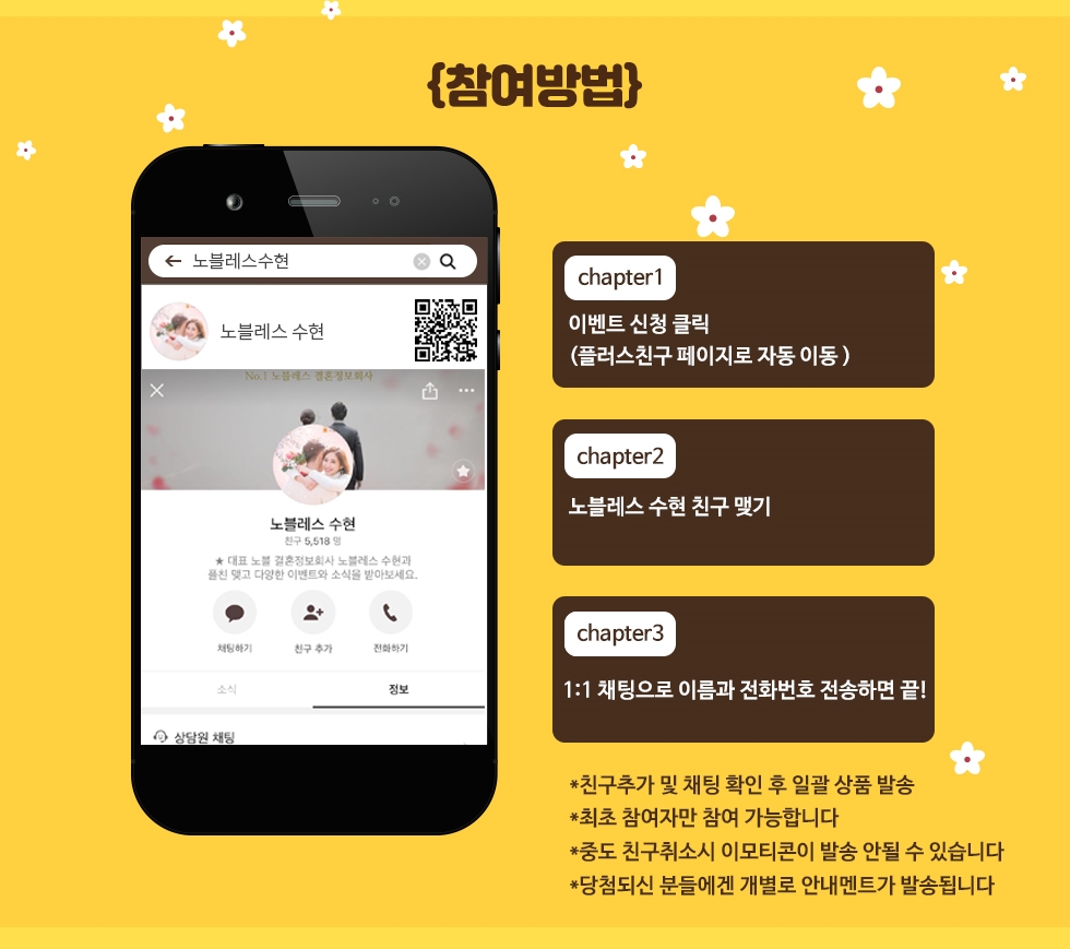그리고 1:1 채팅으로 이름과 전화번호만 전송하면 참여 끝!
